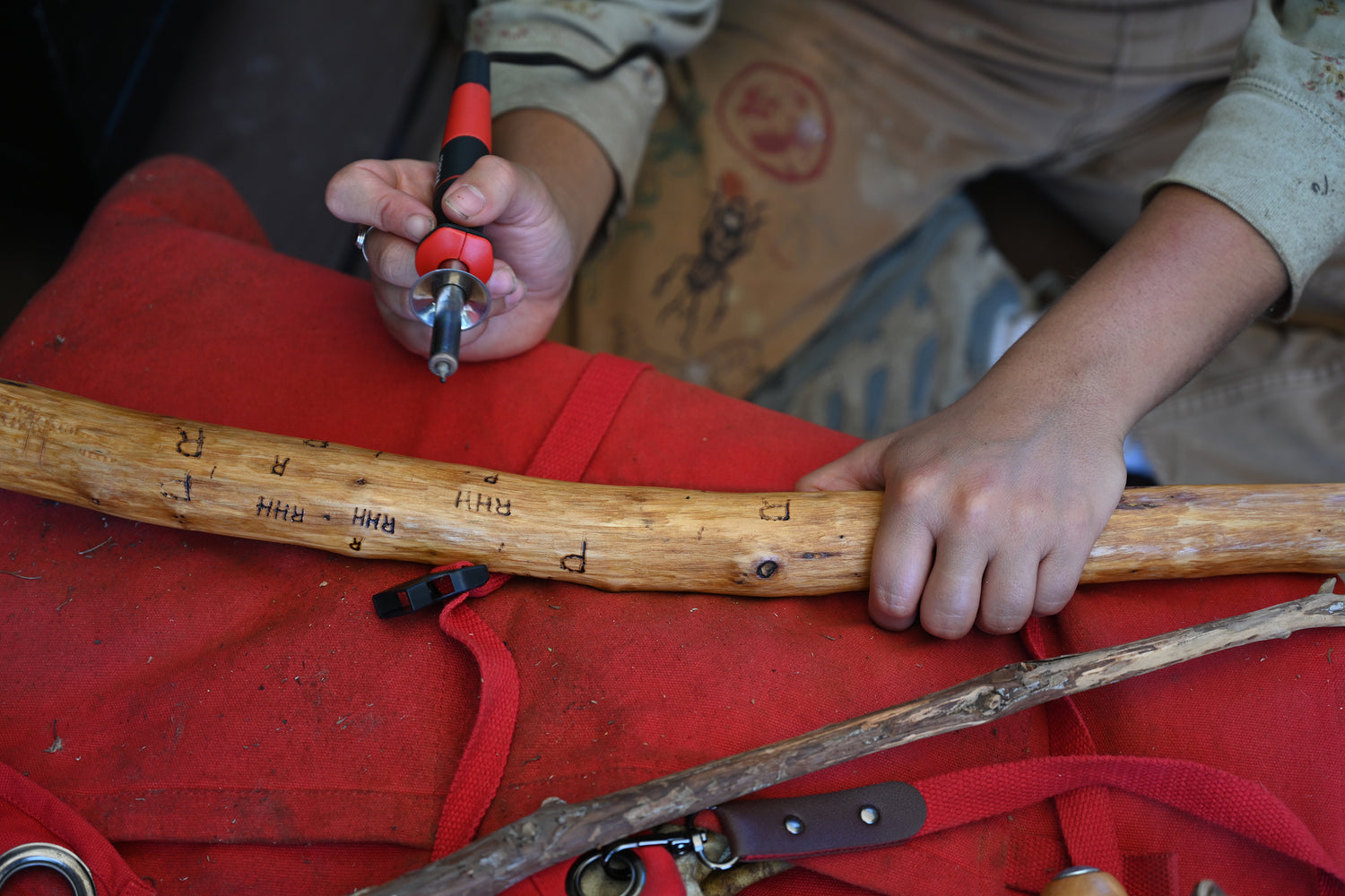 All sticks & staffs come with the RHH burned engraving . Custom engraving is available (10 letters free). Please indicate where on your stick customization is wanted - top third, middle, or bottom. Message with any question or clarifications needed.